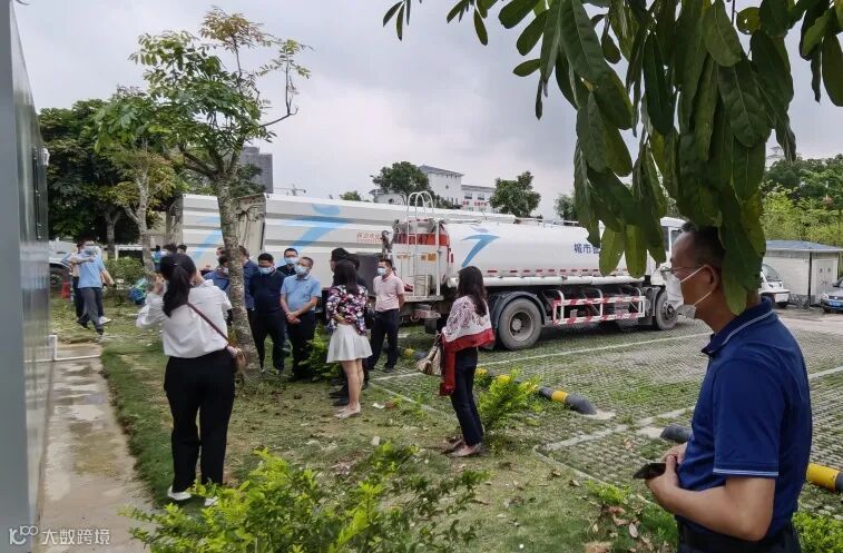 2022年5月9日下午,阳江市某城管局领导来到广州市黄埔区知识城九龙垃圾中转站渗滤液处系统现场参观调研。