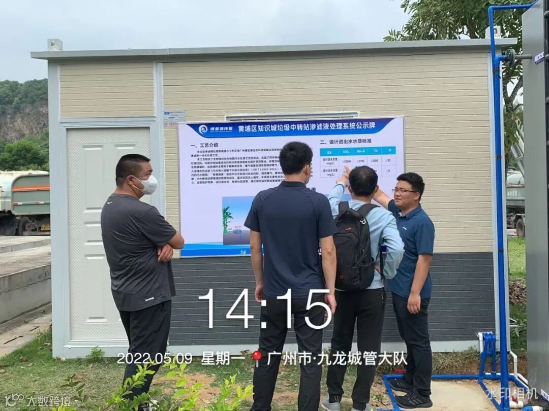 在技术总监张博士的陪同下,城管局领导一行参观了广州市黄埔区知识城九龙垃圾中转站,现场观看垃圾渗滤液进水、处理和水质达标情况,详细了解我司渗滤液处理工艺详情及运营管理流程。