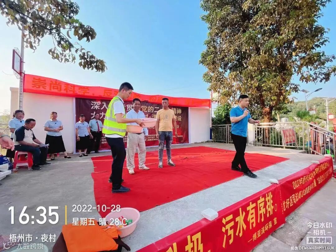 同时,在夜村文化广场也设置相应的宣传摊位,向村民发放宣传资料,介绍大坡镇全域污水治理及全域垃圾治理项目,引导村民养成垃圾分类习惯、了解和支持污水处理系统建设工作,共同维护家乡的美好环境。