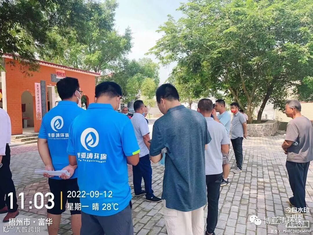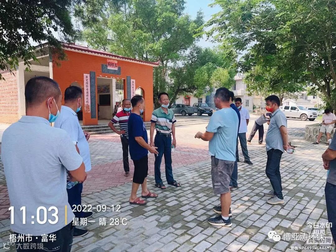 9月12日,梧州市龙圩区新地镇古卯村、大村村的村民代表,参观了博亚涛公司在大坡镇建设运营中的全域污水治理项目。我司负责该项目的技术团队带领村民考察,介绍项目规划和运营现状。
