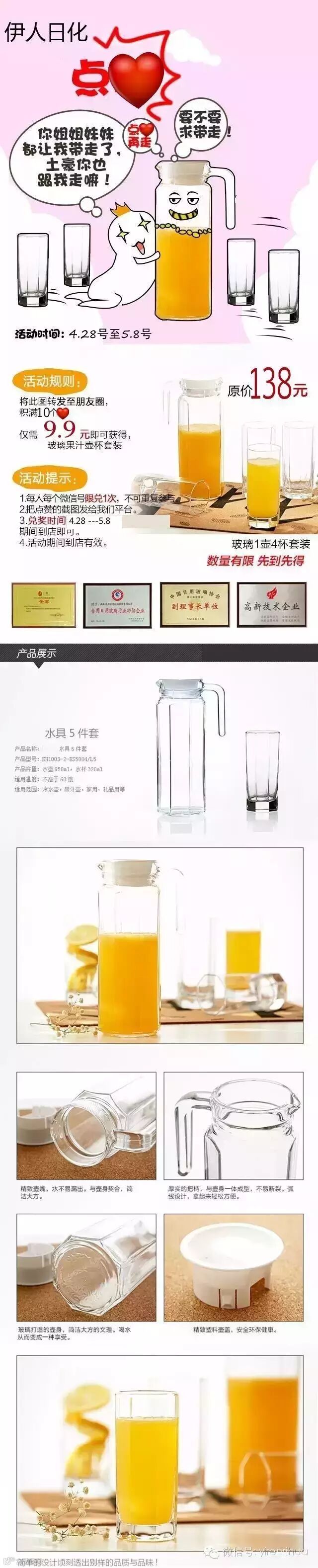 仅需9.9即可获得冰水壶五件套