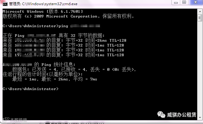 下图就是cmd命令ping ip地址的结果,代表ip地址是通的