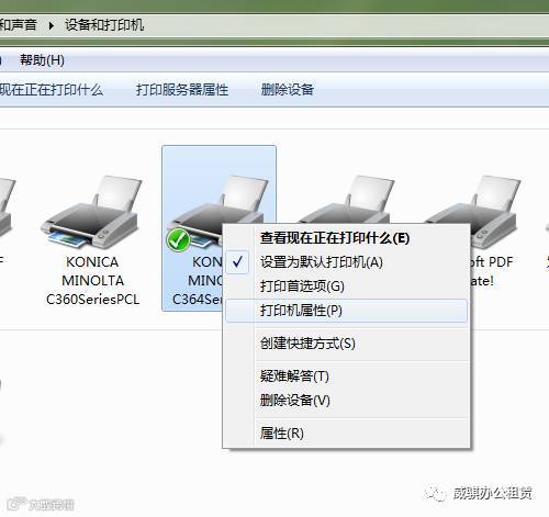 第二步,选择你的复印机 — 右键“打印驱动” — 选择“打印机首选项”