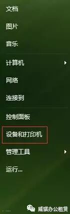 威骐办公设备租赁第一步,电脑“开始”键 — 选择“设备和打印机”(注:win10,电脑“开始键” — 设置 — 设备 — 打印机和扫描仪)