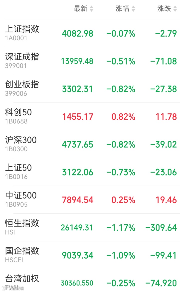 1、A股:A股窄幅整理,上证指数收跌0.07%报4082.98点,但仍录得连续15根阳线;深证成指跌0.51%,创业板指跌0.82%,万得全A涨0.08%。市场成交额2.83万亿元。商业航天、脑机接口、核聚变题材集体爆发,算力芯片、电子化学品概念走强;大金融、有色金属走弱。志特新材晋级“20cm”4连板,成为2026年首只“翻倍股”。