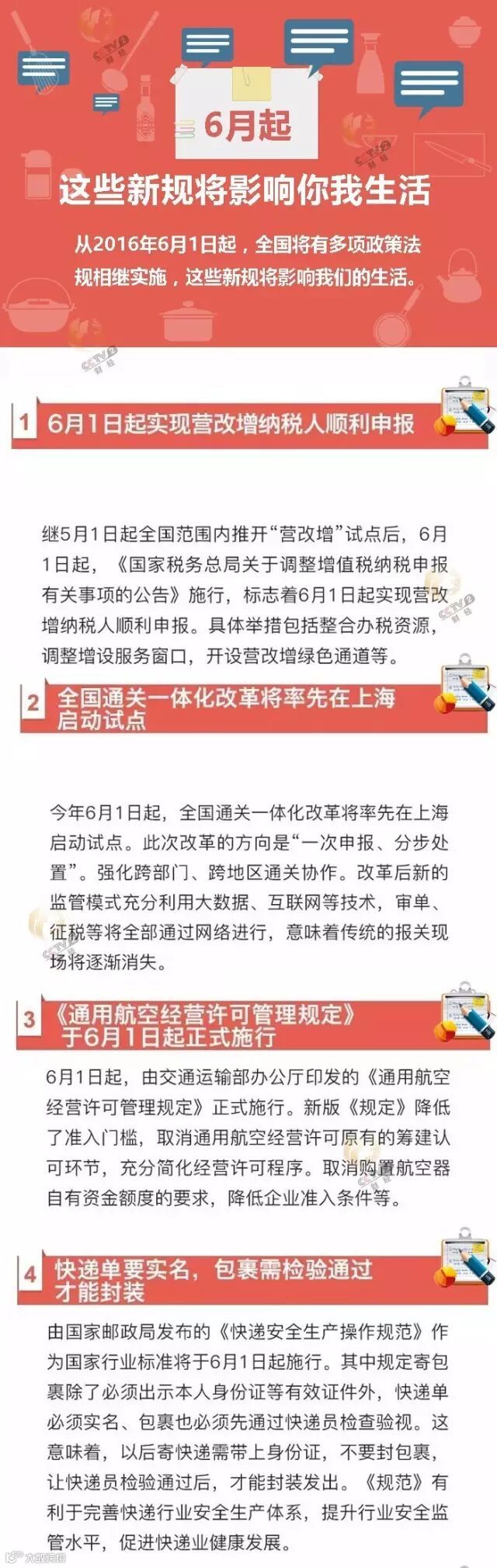 从2016年6月1日起,全国将有多项政策法规相继实施,快递实名、出入境携带物品、税收…这些新规将如何影响我们的生活呢?快来和小编一起看看吧~