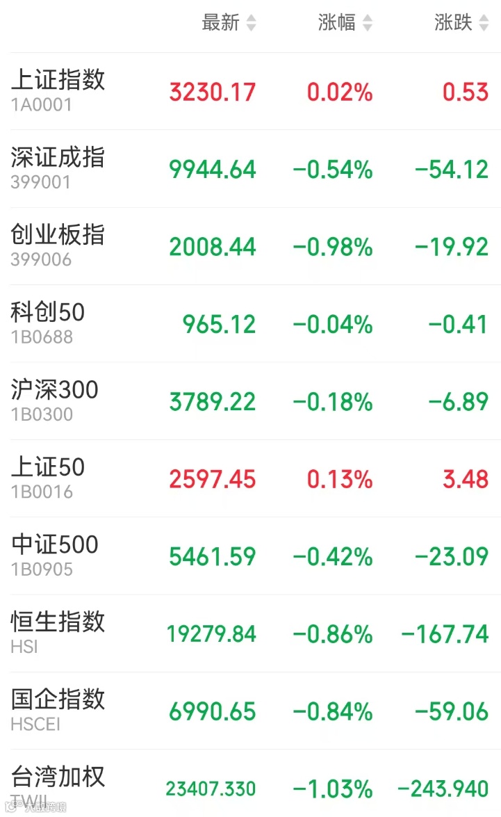 2、港股:港股三大指数延续跌势,恒生指数跌0.86%报19279.84点,恒生科技指数跌1.09%,恒生国企指数跌0.84%,大市成交1683.97亿港元。南向资金净买入额为148.73亿港元,腾讯控股再获大幅净买入约85亿港元。
