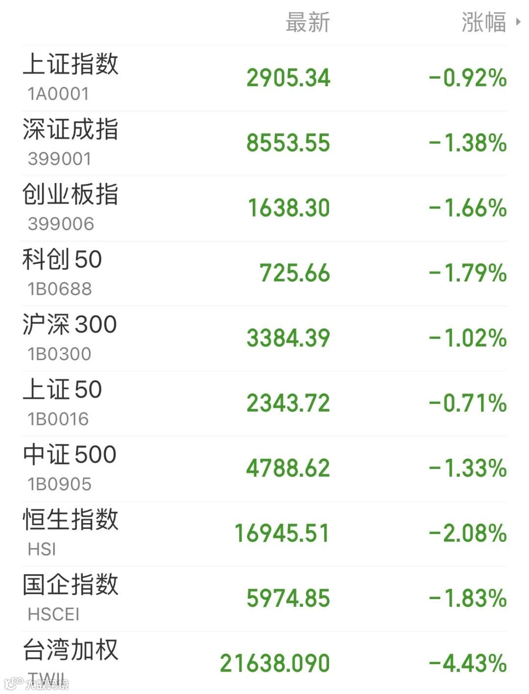 2、港股:港股三大指数全天弱势震荡,恒生指数收跌2.08%报16945.51点,周跌0.45%;恒生科技指数跌2.62%,周跌1.69%;恒生国企指数跌1.83%,周跌0.6%。非必需消费、科技、原材料、工业板块跌幅居前。大市成交1005亿港元,南向资金净卖出18.96亿港元,小米集团逆市获净买入4.9亿港元。