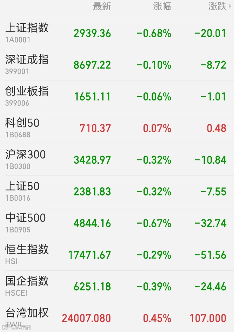 2、港股:香港恒生指数跌0.29%报17471.67点,恒生科技指数跌0.01%,恒生中国企业指数跌0.39%。原材料、能源股下挫,中国宏桥跌近7%领跌蓝筹,中国神华跌近5%;百度集团涨超10%,农夫山泉涨逾4%。大市成交1023.4亿港元,南向资金净买入8.65亿港元,中国移动获净买入2.11亿港元居首,中国海洋石油遭净卖出3.19亿港元最多。中国台湾加权指数收盘涨0.45%,报24007.08点,续创历史收盘新高。