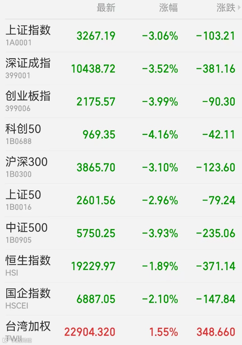 1、A股:上周五A股低开低走,午后单边下挫大幅收跌,券商、保险板块领跌,固态电池、跨境电商、低空经济概念活跃。截至收盘,上证指数跌3.06%报3267.19点,深证成指跌3.52%,创业板指跌3.98%,北证50跌5.16%,科创50跌4.16%,万得全A跌3.38%,万得A500跌3.31%,中证A500跌3.18%。市场成交额1.83万亿元。上周沪指累跌1.91%,深成指跌2.89%,创业板指跌3.03%。