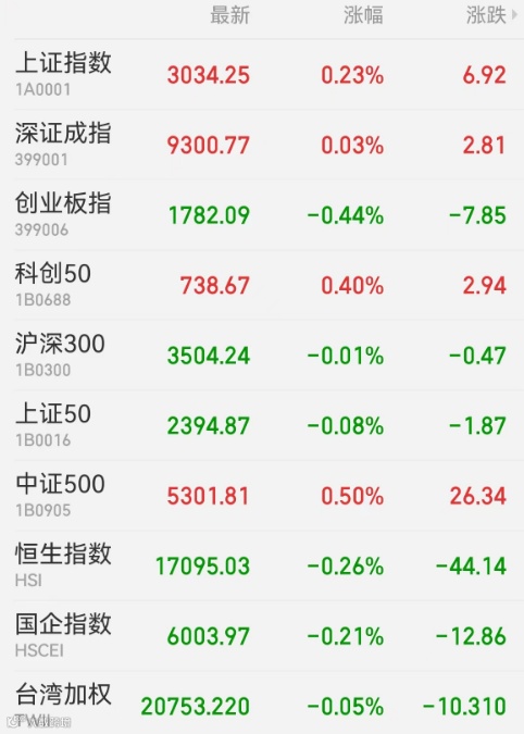 2、港股:香港恒生指数收跌0.26%报17095.03点,恒生科技指数跌0.38%,恒生国企指数跌0.21%。医药、地产板块跌幅居前,中升控股跌超6%领跌蓝筹。个股方面,KEEP大涨近46%,成交额超4亿港元。大市成交987.97亿港元,南向资金净买入71.50亿港元,盈富基金获净买入9.48亿港元居首,中芯国际遭净卖出1.88亿港元最多。中国台湾加权指数收跌0.05%,报20753.22点。