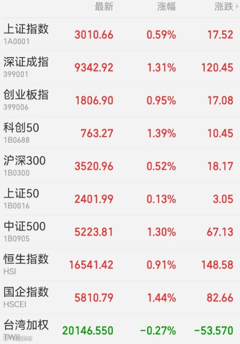 2、港股:香港恒生指数涨0.91%报16541.42点,恒生科技指数涨2.48%,恒生国企指数涨1.44%。以科技股为首的权重多数表现强势,原材料、能源、消费股齐涨。大市成交1172.57亿港元。南向资金净买入额为38.02亿港元,腾讯控股获净买入13.82亿港元最多,美团-W遭净卖出3.22亿港元居首。中国台湾加权指数收盘跌0.27%,报20146.55点。