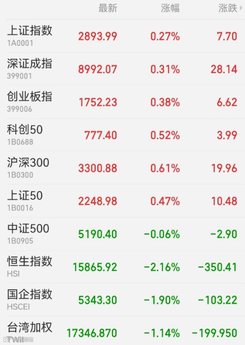 2、港股:香港恒生指数收跌2.16%,报15865.92点,创逾14个月新低;恒生科技指数跌2.29%,恒生国企指数跌1.90%。消费股领跌,百果园集团跌逾30%,公司称股价波动属资本市场正常现象,目前经营一切正常;科技股跌幅居前,京东健康跌近7%。大市成交844.13亿港元,南向资金净买入29.45亿港元,中国移动获净买入4.64亿港元居首,香港交易所遭净卖出1.77亿港元最多。中国台湾加权指数收跌1.14%,报17346.87点。