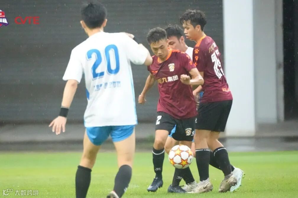 23号魏钦彬持球推进至中场,面对数人的包围拦截,与队友28号黄志飞、1号钟航默契连续短传渗透,轻松通过中场。