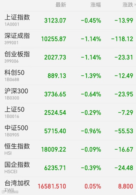 1、A股:A股跳水收跌,科技主线回调,福建板块大涨。上证指数收跌0.45%,报3123.07点,深证成指跌1.14%,创业板指跌1.14%,科创50跌1.39%,上证50跌0.29%,北证50跌1.43%,万得全A跌0.91%,万得双创跌1.41%。A股成交额为6991.9亿元,北向资金净卖出65.92亿元,宁德时代遭净卖出7.61亿元居首,赛力斯获净买入3.73亿元最多。