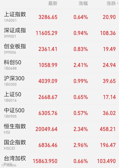 中路推进,算力、6G两翼齐飞,而储能、锂电池等新能源赛道则集体沉默。上证指数收盘涨0.64%报3286.65点,深证成指涨0.94%,创业板指涨0.83%,科创50指数涨2.41%,万得全A涨0.62%,万得双创涨0.73%。北向资金净买入48.08亿元,东方财富获净买入5.43亿元,同花顺遭净卖出5.54亿元。