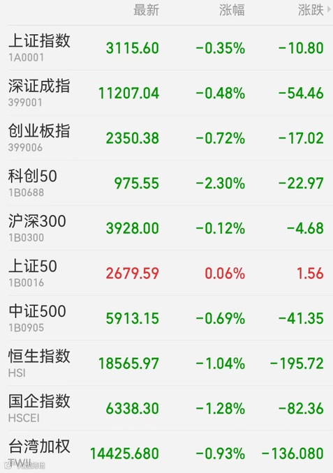 2、港股:港股弱势震荡,三大指数盘中均刷新阶段低位。恒生指数收盘跌1.04%报18565.97点,创半年新低;恒生科技指数跌2.07%,恒生国企指数跌1.28%。大市成交910.44亿港元。科技、新能源汽车、医药、地产股跌幅居前,哔哩哔哩跌5.6%,网易、阿里巴巴跌近4%。中国台湾加权指数收盘跌0.93%。