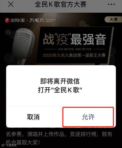 2、在微信长按识别以下二维码,进入活动页面,记得点击“允许”进入全民K歌