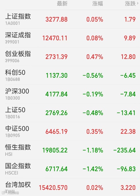 1、A股:A股整体震荡运行,上证指数收盘涨0.05%报3277.88点,深证成指涨0.08%,创业板指涨0.47%,万得双创涨0.42%,万得全A涨0.25%;大市成交1.02万亿元。盘面核心仍为新能源赛道,光伏板块再创新高,风电、养殖、锂电、特高压、地产、海运、储能、汽车及零部件板块造好,稀土、锂矿、软件、CRO、日化、培育钻石板块休整。