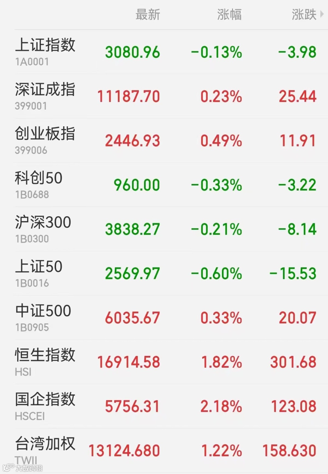 2、港股:港股早盘高开低走,但随后震荡上行大幅收高,恒生指数收盘涨1.82%报16914.58点,恒生科技指数涨4.25%,恒生国企指数涨2.18%。大市成交997.56亿港元。医疗保健板块爆发,科济药业、信达生物等多股涨超10%。手机产业链股走强,比亚迪电子涨近11%。中国台湾加权指数收盘涨1.22%。收盘,港股通(沪)每日额度420亿元剩余395.11亿元,占比94.1%,港股通(深)每日额度420亿元剩余381.81亿元,占比90.9%。