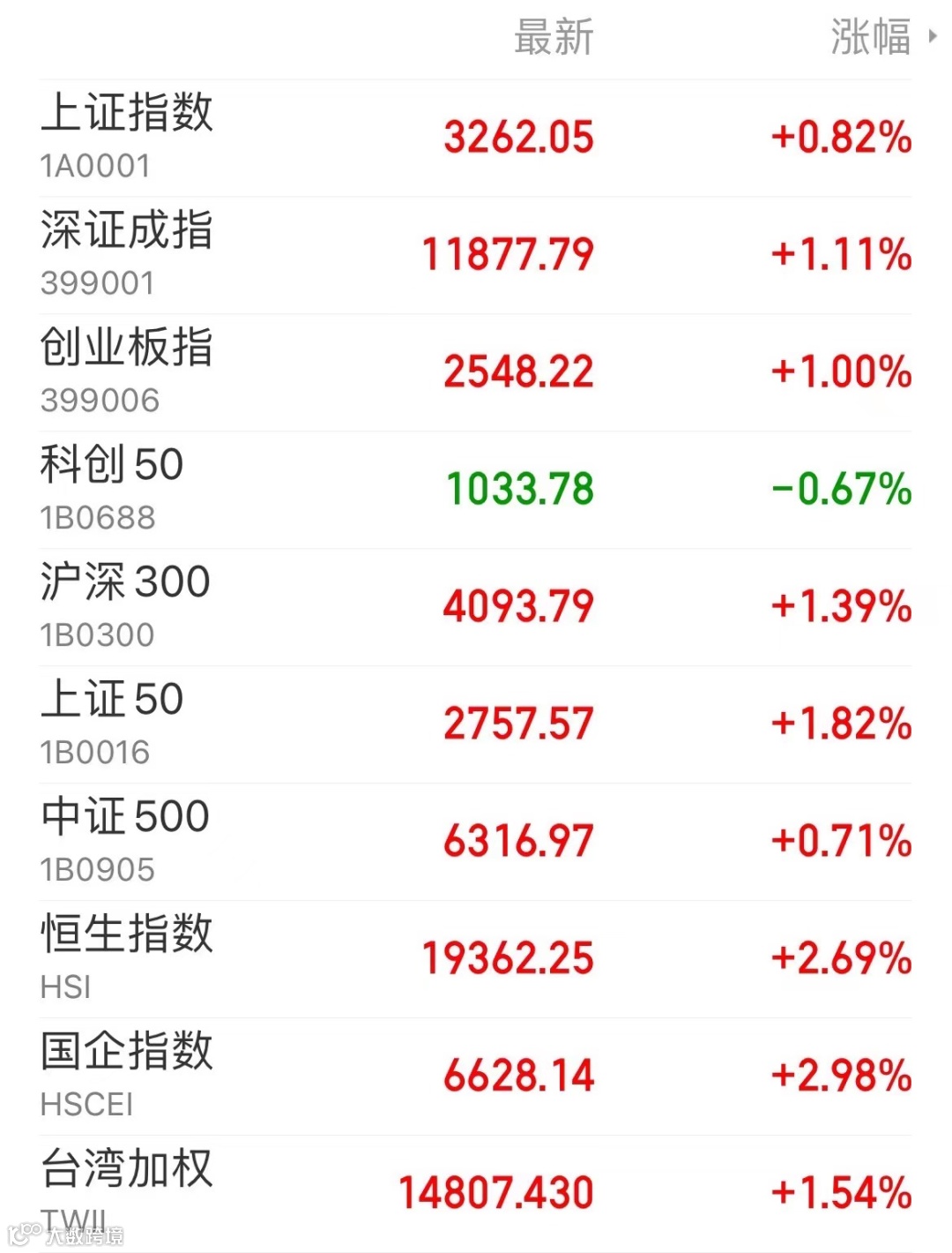 1、A股:A股节前红盘收官,金融、消费等权重股回暖,光伏、半导体等赛道股集体回调。北向资金跑步进场,但市场量能未见明显放大,假期效应凸显。截至收盘,上证指数收涨0.82%报3262.05点,深证成指涨1.11%,创业板指涨1%,万得全A涨0.73%,万得双创涨0.06%;市场成交额7798.1亿元。牙科医疗板块大涨,通策医疗等多股涨停,医疗服务板块受提振。本周,上证指数累计涨2.37%,终结周线三连阴;创业板指涨0.6%。