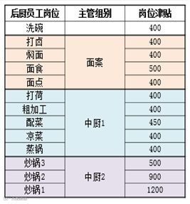 门店由厨师长樊艳斌负责,在将后厨划分为五小组,分别为面吧、炒锅、配菜、打荷与蒸锅、凉菜与洗碗,并选出每个小组的负责人,由小组负责人追踪各小组的学习进度,包括新增任务的通知,学习任务完成的计划时间等,并向厨师长定期汇报。