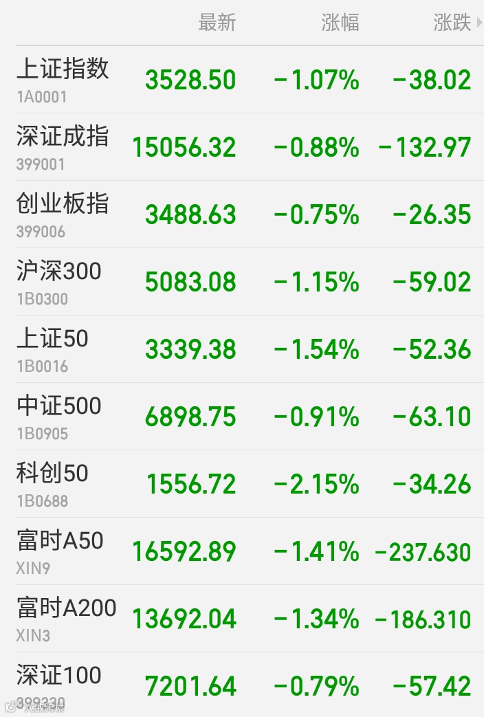 1、A股:A股弱势整理,创业板指盘中多次翻红拉升均告失败,上证50指数再创年内新低,“银地保”普遍低迷,白酒冲高回落,新能源车概念全面回撤。上证指数收跌1.07%报3528.5点,创业板指跌0.75%失守3500点关口,深证成指跌0.88%。两市成交额连续10个交易日突破万亿;北向资金实际净流出108亿元,创近10个月新高,宁德时代、比亚迪分别遭净卖出11.22亿元、7.96亿元,山西汾酒、阳光电源分获净买入逾3亿元。两市融资余额连增5日,续创近6年新高至1.65万亿元。