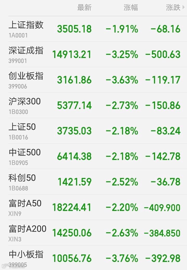 1、A股:A股单边下行,Wind行业指数多数飘绿。上证指数收盘跌1.91%报3505.18点,盘中失守3500点;深证成指跌3.25%;创业板指跌3.63%,创4个月最大跌幅。两市成交额连续两个交易日不足万亿。网游概念持续受追棒,