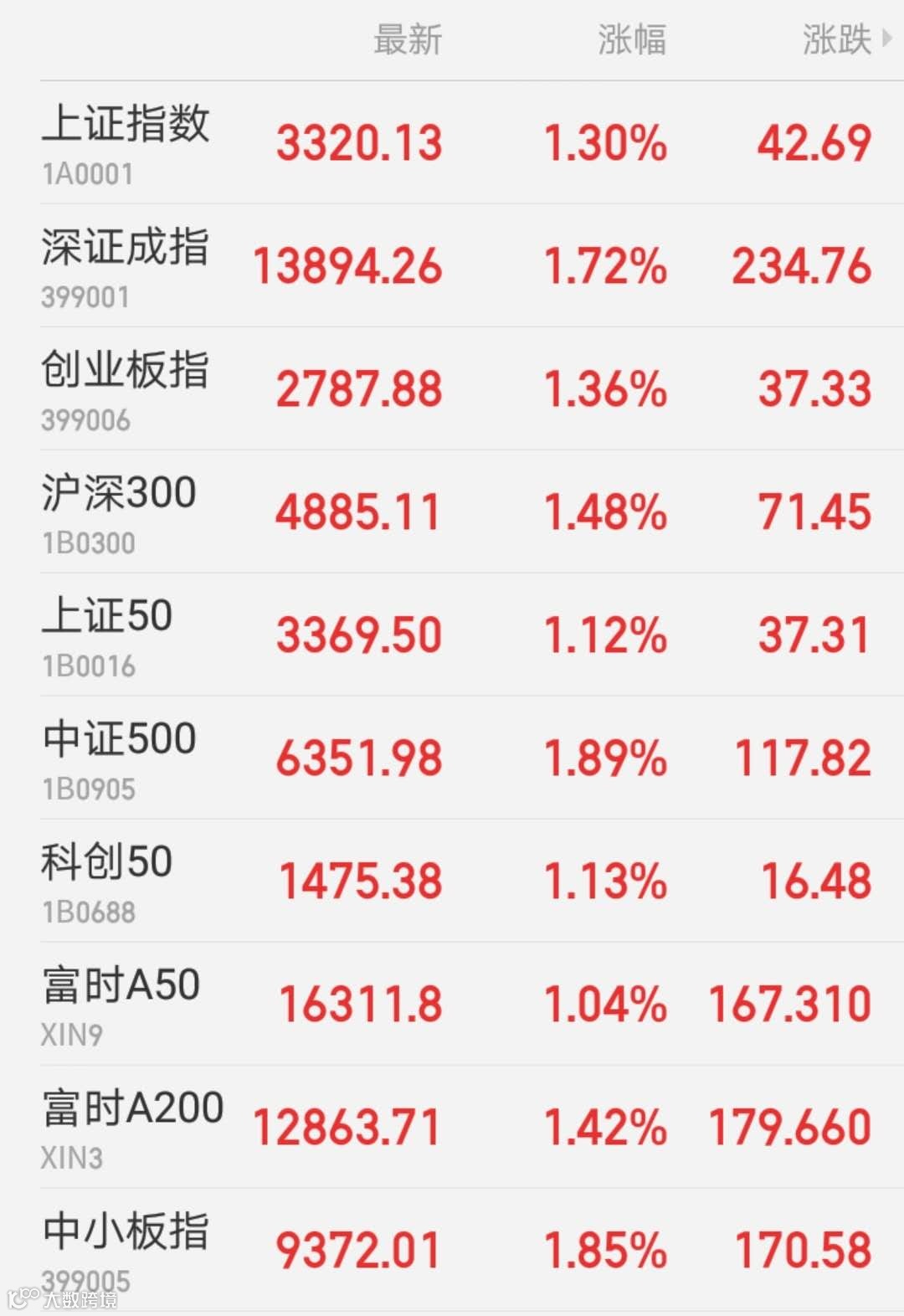 1、A股:A股两市股指放量攀升,机构重仓明星股批量创新高。上证指数收盘涨1.3%站上3300,创业板指涨1.36%,均连涨四日;万得全A涨1.6%,成交8447亿元。汽车、白酒板块依旧是资金热炒目标,五粮液市值首次突破一万亿元,比亚迪涨停且总市值达五千亿元。中兴通讯午后封板提振5G板块。