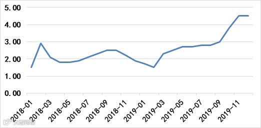 2、从经济和政策层面来看,1月6日央行降准0.5个百分点,1月11日银保监会召开的2020年工作会议明确要求小微企业贷款成本降0.5%,这是非常重要的一条信息,可以作为一个参考,降息的节奏和幅度可能会快于和大于预期。同时2019年12月以来经济数据有所修复,1月CPI低于预期也给货币政策带来了更大操作空间。另外年初专项债发行逐步落地也对经济起到了较强的支撑作用,政策面的宽松有利于做多动能的可持续性。