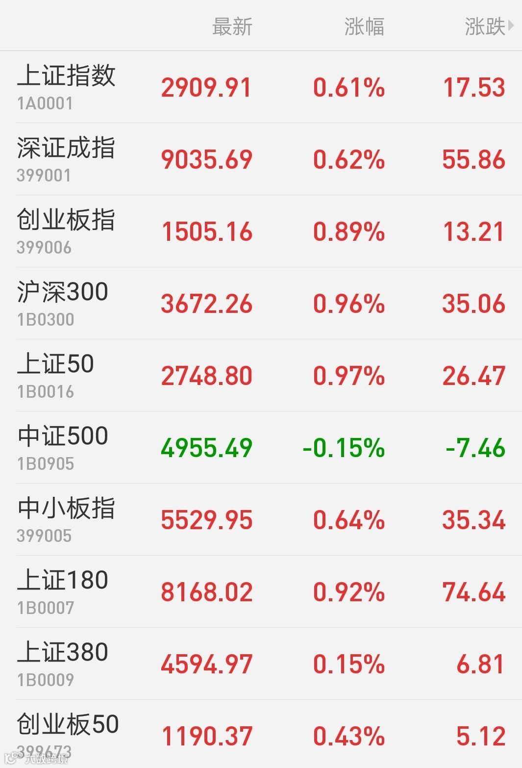 1、A股:A股午后冲高回落,收盘集合竞价指数跳涨,北向资金大幅涌入。上证综指涨0.61%报2909.91点;深证成指涨0.62%;创业板指涨0.89%。两市成交近5000亿元,较上日放量逾一成。