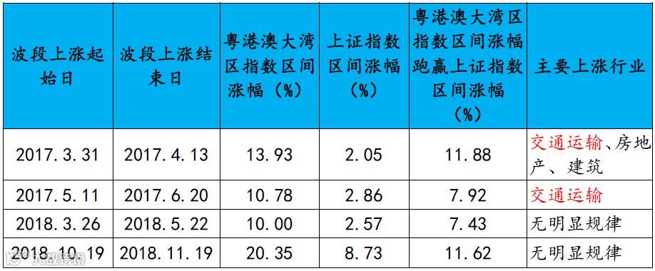 表5:2017年至今粤港澳大湾区指数四次独立上涨行情