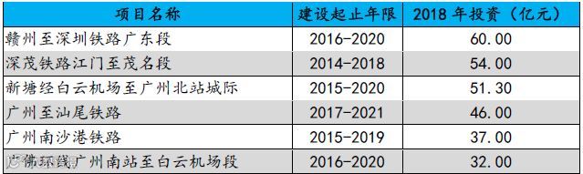 交运项目在政策大力扶持下正加速实施。2017年《广东省综合交通运输体系发展“十三五”规划》明确提出到2020年广东将实现“12312”交通圈:即广州与珠三角各市1小时通达,珠三角与粤东西北各市陆路2小时左右通达,与周边省会城市陆路3小时左右通达,广东与全球主要城市12小时通达。广东省发改委2018年7月印发了《广东省供给侧结构性改革补短板重大项目2018年投资计划》,总投资达1.9亿元,高速公路、轨道交通工程、港航工程总投资额高达1.3亿元,占总投资的68%,其中2018年大湾区在交通基础设施方面的投入超过1600亿元。