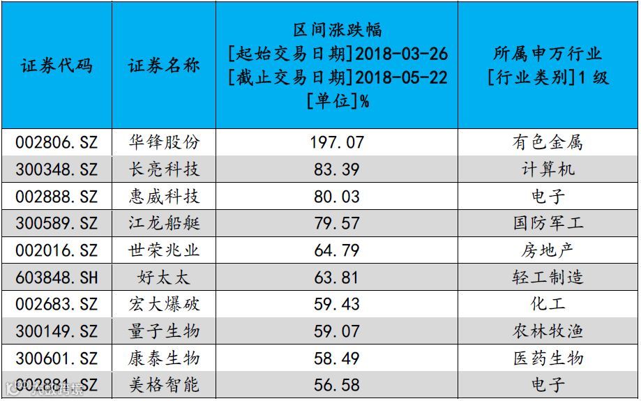 表3:2018.3.26-2018.5.22粤港澳大湾区涨幅前十名个股(剔除刚上市新股)