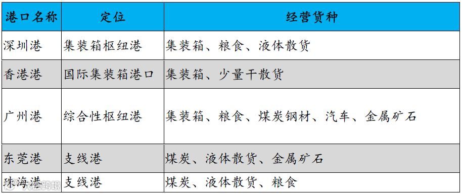 图4:粤港澳大湾区主要港口定位及经营货种