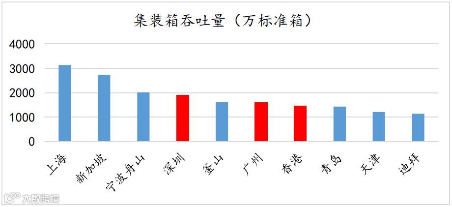 图3:全球集装箱吞吐量前十大港口