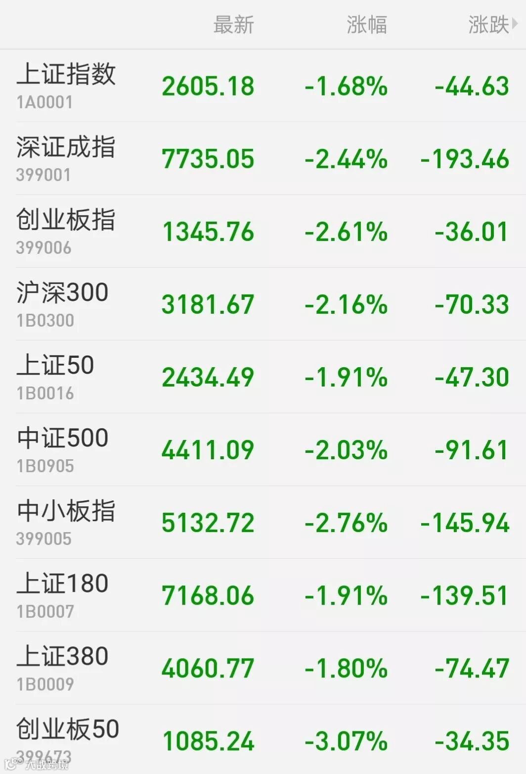 1、A股:沪深两市单边下行,上证综指收跌1.68%报2605.18点,深证成指跌2.44%报7735.05点,创业板指跌2.61%报1345.76点,万得全A收跌近2%。两市成交3100亿元;北上资金净流出逾42亿元,结束连续8日净流入。板块方面,5G和手机零部件板块成为市场萎靡下行的主因,4+7带量采购预中选品种大幅降价,医药股午后全线跳水;知识产权概念遭遇抛售,黄金、燃气股抗跌。