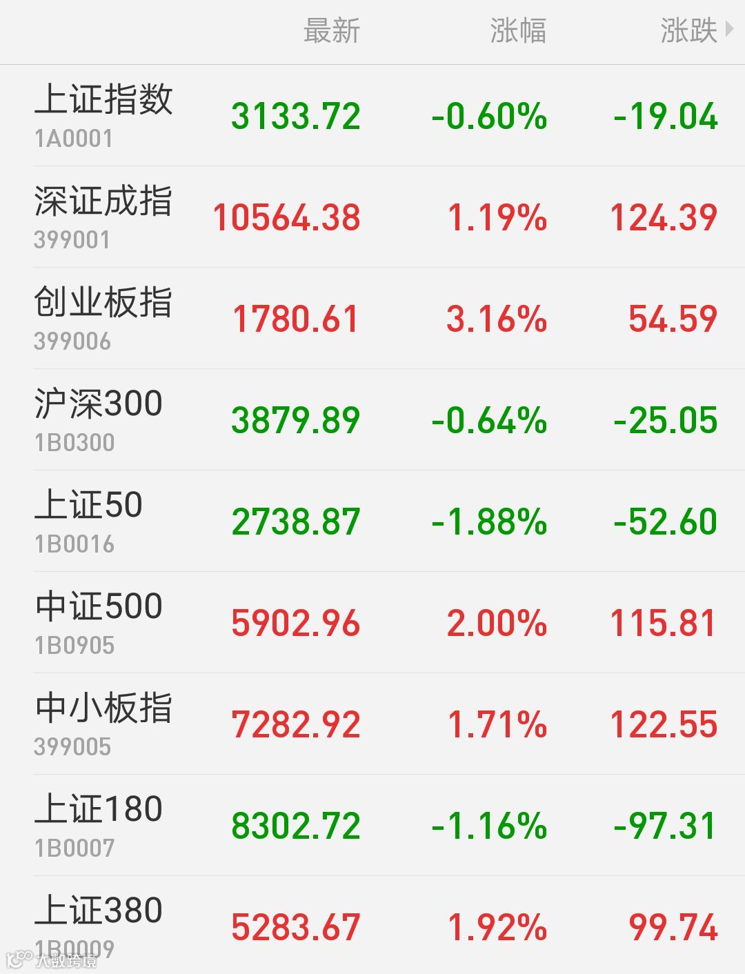 1、A股:上证指数报3133.72点,下跌0.6%,成交额2159.1亿。深证成指报10564.38点,上涨1.19%,成交额2550.09亿。创业板指报1780.61点,上涨3.16%,成交额836.61亿。两市合计成交4709.19亿。从盘面上看,航天航空、软件服务等板块涨幅居前。