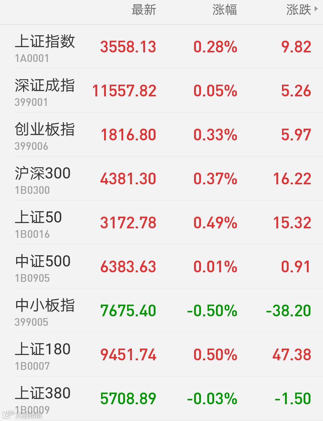 1、A股:上证指数报3558.13点,上涨0.28%,成交额2581.5亿。深证成指报11557.82点,上涨0.05%,成交额2437.76亿。创业板指报1816.8点,上涨0.33%,成交额707.61亿。两市合计成交5019.26亿。从盘面上看,保险、水泥建材等板块涨幅居前。