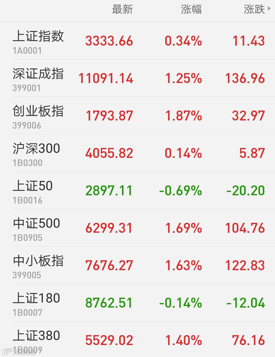 1、A股:上证指数报3333.66点,上涨0.34%,成交额1670.63亿。深证成指报11091.14点,上涨1.25%,成交额2043.74亿。创业板指报1793.87点,上涨1.87%,成交额522.7亿。两市合计成交3714.37亿。从盘面上看,钢铁、水泥等板块涨幅居前。
