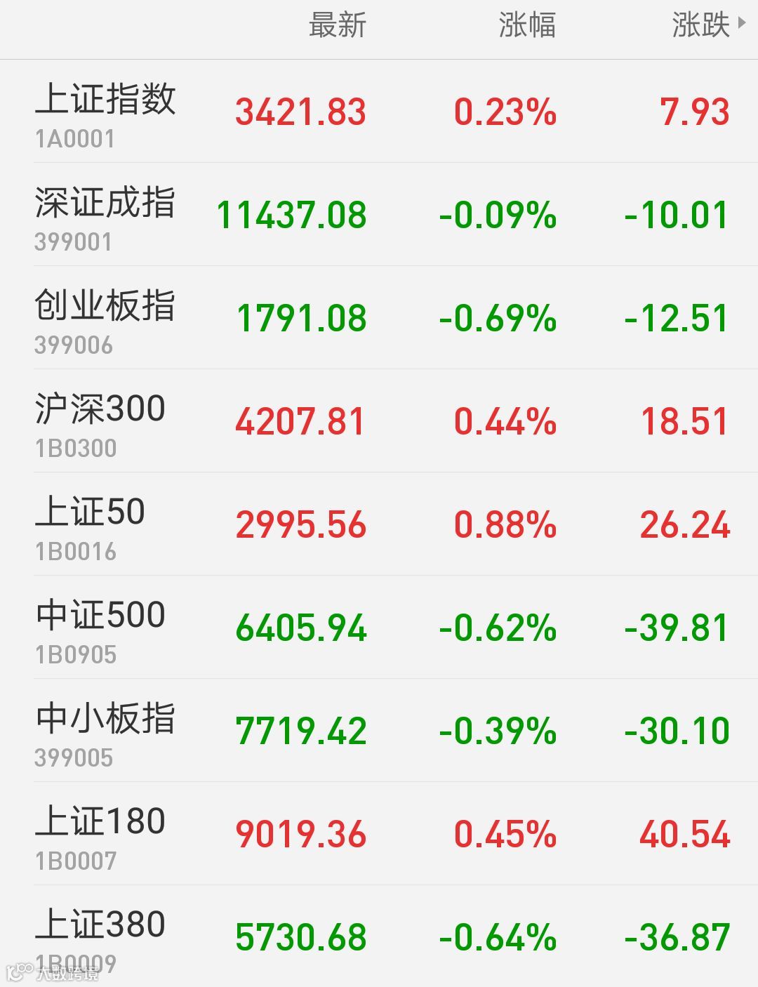 1、A股:上证指数报3421.83点,上涨0.23%,成交额2545.15亿。深证成指报11437.08点,下跌0.09%,成交额2618.39亿。创业板指报1791.08点,下跌0.69%,成交额603.97亿。两市合计成交5163.54亿。从盘面上看,区块链、国产软件等板块涨幅居前。