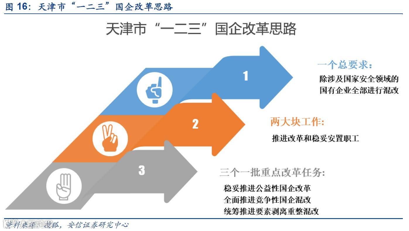 京津冀发展和国企改革是当前党中央和国务院最关心的问题之一。天津因其特殊的地理和政治地位,决定了其在本轮国改中的重要地位。当前,天津国改进度较上海、浙江、广东等地相对落后。随着天津新一届领导班子就位,天津国企混改的决心和推进力度都颇为亮眼。目前,天津国企混改已经呈现提速态势。建议关注:中新药业、海泰发展、天房发展、津劝业、天津磁卡等。