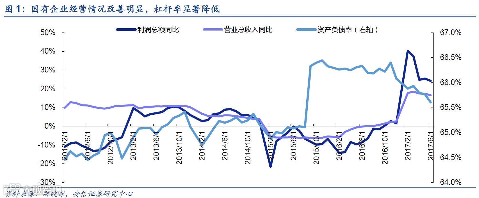 国有企业改革成效明显。从2016年年中以来国企整体持续的经营改善和利润修复是国企经济向好的具体表现。在供给侧改革的推动下,国企的杠杆率不断下降。国企正在上演强者俞强的模式,优势企业得到进一步发展。国企改革的初步成效也是为实现国有资产保值增值这一目标打下一支强心剂,进一步确认目前正在实施的国企改革举措方向是正确的,我们认为下半年国改将进一步加速。