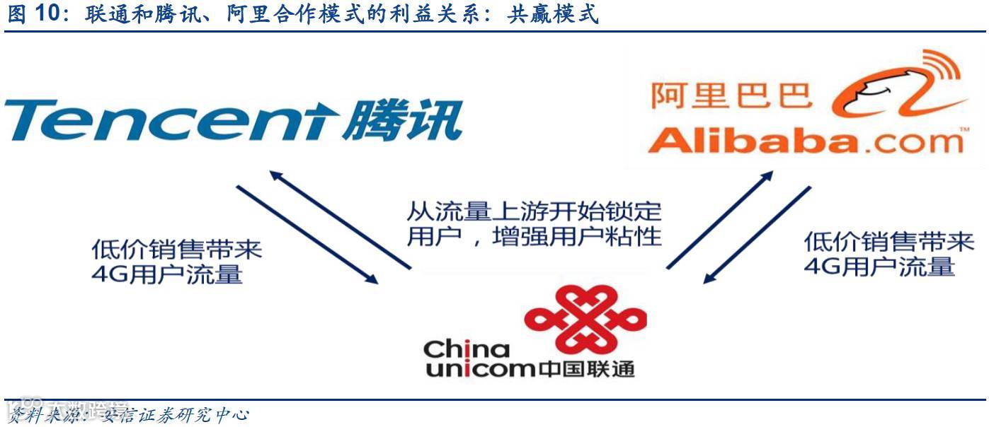 不仅如此,据中国通信网消息,中国联通近期决定分别在广东深圳成立中国联通电子商务腾讯合作运营中心,在浙江杭州成立中国联通电子商务阿里合作运营中心,进一步加深与腾讯和阿里的合作。联通与腾讯和阿里此次进一步合作一方面是因为双方自身的战略互补关系在前期试水合作中实现了共赢,展现了广阔的合作前景,另一方面也为后期的深入合作以及在混改方案中引入阿里、腾讯打下良好基础。