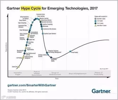 从Gartner发布的2017年技术成熟度曲线来看,区块链正在从期望膨胀期进入幻灭期,市场泡沫依然存在,但也已经出现了以太坊、超级账本、Open Blockchain等可商业化的底层协议,行业应用逐渐增多。对于一种新兴技术,我们往往会在短期内高估它的价值,但在长期的时间轴线上又往往会忽视它的影响,因此,对于区块链技术我们始终抱有一种谨慎而乐观的态度,多关注行业内的创业公司,你会发现改变随时都在发生。