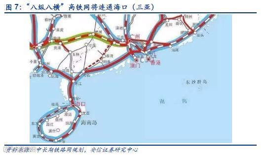 高铁过海:我国的高铁网络,正在由“四纵四横”向“八纵八横”升级,升级之后将基本覆盖中国人口20万以上城市。孤悬大陆的海南岛由于地理位置的原因长期游离于大陆的铁路网之外,交通不便势必极大的影响了岛内旅游业的发展。当前“八纵”规划中的包(银)海通道(包头~延安~西安~重庆~贵阳~南宁~湛江~海口(三亚)高速铁路)有望将高铁网络延伸至海南岛,并包括海南环岛高速铁路。据海口市交通运输和港航管理局近日在“问政海口”平台上对网友问题的答复:“中国铁路总公司于2017年9月15日至16日召开湛江至海安铁路扩能工程预可研审查会。根据本次会议精神,未来高铁过海倾向于高铁加轮渡的方式,高铁其他过海方式也在研究。”