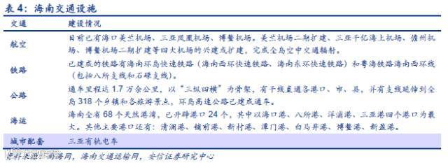 交通是海南打造国际旅游岛最重要的基础设施之一,随着海南国际航线枢纽,跨海高铁以及岛内交通网络构建完成,海南的旅游产业未来有望迎来新的发展阶段。