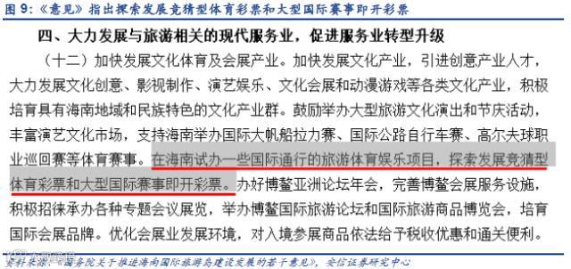 国家级的政策上,2010年初曾公布《国务院关于推进海南国际旅游岛建设发展的若干意见》(国发〔2009〕44号)。《意见》明确指出:在海南试办一些国际通行的旅游体育娱乐项目,探索发展竞猜型体育彩票和大型国际赛事即开彩票。考虑到文件的表述和我国现有的法律法规,我们认为海南开放类似澳门赌场的可能性较低,未来首先开放的或许是赛马竞技等旅游体育娱乐项目。需要注意的是,《意见》公布7年以来海南在赛马方面的试水推进较慢,未来是否会有新的政策推动有待观察。