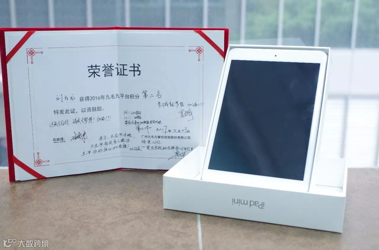 就是九毛九平台啊,我们的积分不是累计的吗?全年积分累计前三名,奖励每人一部iPad mini2