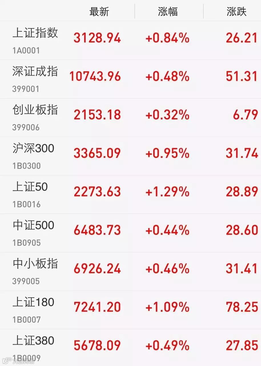 板块普涨,一带一路、券商、债转股、股权转让等领涨,黄金、农牧板块小幅下挫。